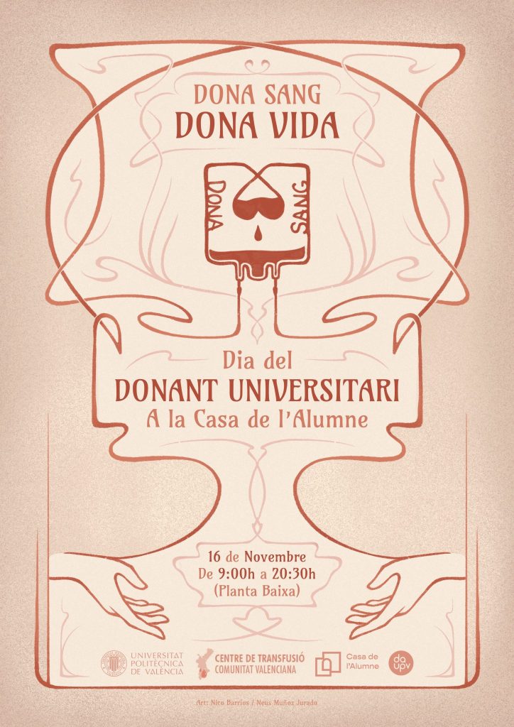 El dimecres dia 16 de novembre, es realitzarà el Dia del Donant de Sang UPV, durant aqueix dia s’habilitarà la planta baixa de la Casa de l’Alumne per a fer una donació multitudinària. L’horari serà de 09.00 a 20.00 hores.