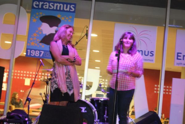 LONGS, la banda ganadora, con la Vicerrectora de Alumnado y Cultura, Doña Mª Victoria Vivancos Ramón