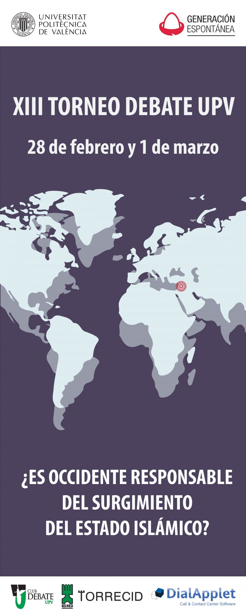 La Casa del Alumno acogerá el XII Torneo de Debate UPV del 28 de febrero al 1 de marzo, donde el tema a tratar sera: ¿Es occidente responsable del surgimiento del estado islámico?.