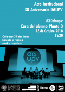 Així mateix, a partir d’avui es podrà visitar una exposició sobre la història de la DAUPV en la planta baixa de l’edifici fins al 9 de novembre.