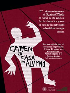 Consiste en encontrar cuatro pegatinas, que serán partes de un cadáver «Roderick Usher». Nuestro personaje ficticio fue hallado después de un macabro asesinato, faltando algunas partes de su cuerpo, que el alumno deberá encontrar en el recinto de la Casa del Alumno, para que se pueda resolver éste crimen.