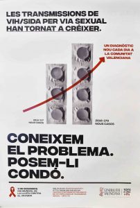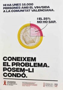 Amb el lema CONEIXEM EL PROBLEMA. POSEM-LI CONDÓ. Enguany la Conselleria de Sanitat Universal i Salut Pública ha engegat una campanya amb motiu de la commemoració del Dia Mundial de Lluita contra el VIH/SIDA, el próxim dia 1 de desembre, per a conscienciar a la població de l’ús del preservatiu com a mitjà més eficaç per a prevenir el contagi de VIH/SIDA i altres infeccions de transmissió sexual.