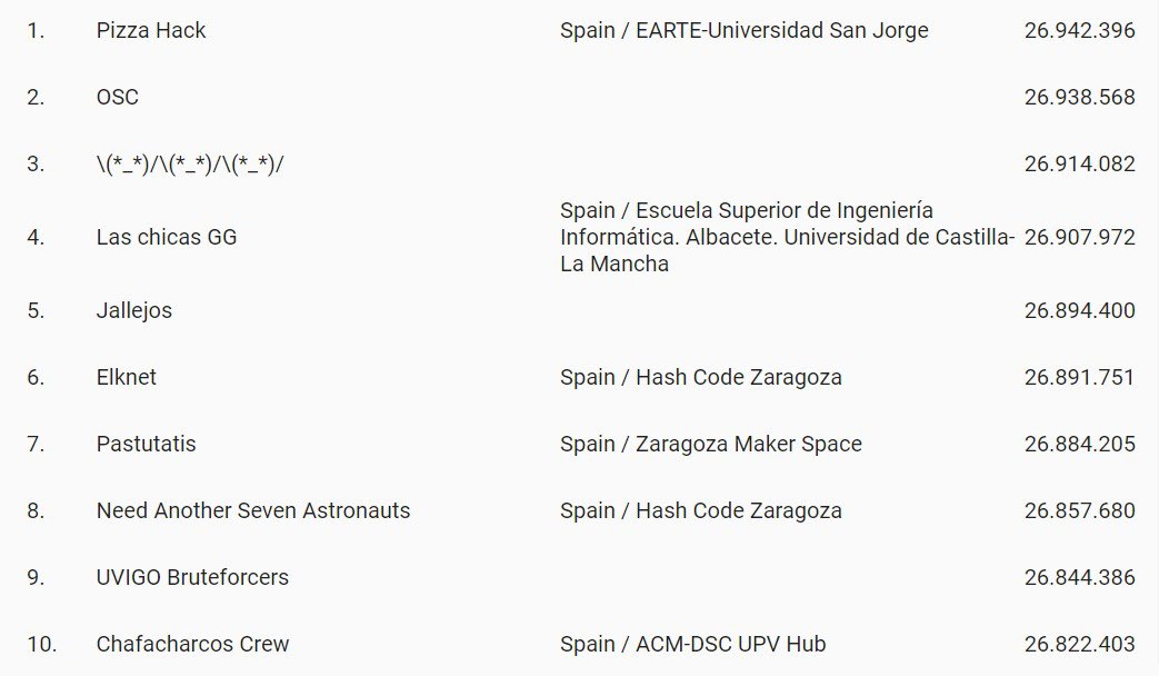 Desde la Casa del Alumno, queremos dar la enhorabuena a los organizadores, participantes y al equipo que ha alcanzado el top 10.